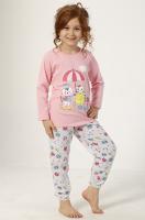 Комплект для девочки из х/б трикотажа.Джемпер с ярким принтом "кот и кошечка под зонтом" с блеском. Полуприлегающий силуэт. Горловина на тонком манжете.