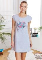 Туника для девочки, из эластичного х/б трикотажа. Расклешенный силуэт. Заниженная пройма, спущенное плечо. Горловина отделана трикотажным кантом. На груди красочный цветочный принт.Назначение: домашнее платье, ночная сорочка для девочки