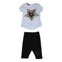 Костюм для девочки из эластичного х/б трикотажа.Футболка с принтом-вышивкой "звезда" из пайеток. Полуприлегающий силуэт. Горловина на трикотажном манжете. Полукруглый низ спинки.