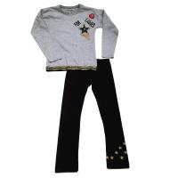 Костюм для девочки, из эластичного х/б трикотажа.Джемпер прямого кроя. На полочке крупная аппликация "звезда", украшенная конусными стразами, надпись "for ladiec" Низ джемпера на контрастной резинке. Линия плеча занижена.