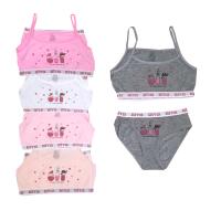 Комплект для девочки (топ + трусики), из эластичного х/б трикотажа.Топ на тонких бретелях из эластичного трикотажа. Под грудью на эластичной резинке с блестящими, фирменными надписями. На груди принт "ароматы".