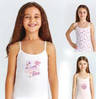 Маечка для девочки, из эластичного х/б трикотажа, с принтом"пчелки". Полуприлегающий силуэт. Тонкие бретели из эластичного трикотажа.ВНИМАНИЕ! Расцветка может прийти любая, из представленных на фото.