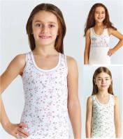Маечка для девочки, из эластичного х/б трикотажа с принтом "птицы". Полуприлегающий силуэт. Широкие бретели отделаны эластичным трикотажным кантом и декоративным швом.ВНИМАНИЕ! Расцветка может прийти любая, из представленных на фото.