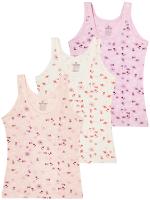 Маечка для девочки, из эластичного х/б трикотажа с принтом "мир растений". Полуприлегающий силуэт. Широкие бретели отделаны эластичным трикотажным кантом.ВНИМАНИЕ! Расцветка может прийти любая, из представленных на фото.