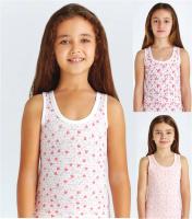Майка для девочки на широких бретелях. Модель приталенного покроя. Выполнена из эластичного х/б трикотажа кулирное полотно. Декорирована милым принтом "Сердечки; Звёздочки". Отделка выреза и пройм из эластичного трикотажного канта в тон полотна. Низ изделия подвернут и прострочен двойной строчкой.Размер 0 (86-92), длина- 38 см, обхват груди- 48 см.