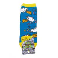 Носки детские, из эластичного трикотажа с тканным принтом  "мышки и сыр" с контрастным носочком, пяткой и манжетом.
