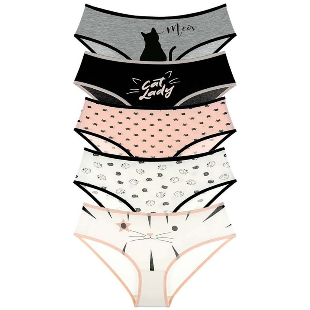 Трусы-слипы для девочки. Выполнены из эластичного х/б трикотажа кулирное полотно. Декорированы кошачьим принтом. В поясе и проймах отделаны эластичным трикотажным кантом контрастного цвета. Ластовица из хлопка.ВНИМАНИЕ: Расцветка может прийти любая, из представленных на фото (цвета могут дублироваться).