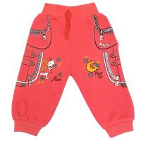 Штаны для девочки из эластичного х/б трикотажа (интерлок). Верх и низ на манжетах из рибаны. Украшены красочными, печатными рисунками и декоративными шнурками на поясе.Размер 74 Штаны длина 36 см, обхват талии 34-36 см.