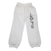 Штаны для девочки с кокеткой по заднему полотнищу. Боковые карманы и низ брюк на манжете. Пояс на внутренней резинке. Штаны украшены яркой надписью из пайеток" LOVE". По боковому шву лампас с основной ткани.Размер 110: длина - 56см, обхват талии - 46-48см
