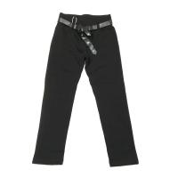 Брюки для девочки, из эластичного трикотажа, зауженного кроя, сзади на кокетке. Широкий пояс с резинкой внутри, шлевками и ремешком из иск. кожи. Сзади два накладных кармана с клепками.Размер 116: длина 68 см, обхват талии 52-58 см.