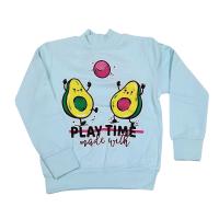 Джемпер для девочки, утепленный, из футера с начесом. Прямой крой. На полочке яркий принт "авокадо". Горловина, рукав, низ джемпера на манжетах.Размер 92: длина- 38 см, обхват груди- 59 см, длина рукава- 37 см.