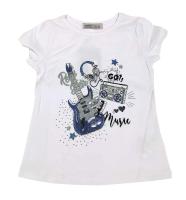 Футболка для девочки с блестками, приталенный крой. На полочке принт.Рост 98, длина- 40 см, обхват груди- 59 см.