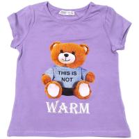 Футболка для девочки из эластичного х/б трикотажа, с красочным принтом-термотрансфером "мишка". Полуприлегающий силуэт. Горловина отделана трикотажным кантом.Размер 110: длина- 39 см, обхват груди- 60 см.