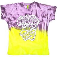 Футболка для девочки с ярким, красочным принтом. Заниженная пройма. Горловина на тонком манжете. На спинке шов по центру.Размер 140: длина 56 см, обхват груди 86 см.