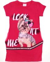 Туника для девочки.А- силуэт. По боковым швам карманы. На полочке принт украшенный стразами и пайетками.Рост 110 см, длина - 53 см, обхват груди- 56 см.