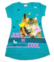 Туника для девочки. Полуприталенный силуэт. Удлинённая спинка. На полочке принт украшенный пайетками.Рост 110 см, длина по спинке- 51 см, обхват груди- 58 см.