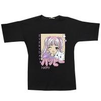 Стильная футболка для девочек имеет прямой крой. Выполнена из хлопкового трикотажа - кулирное полотно. Передняя половинка декорирована термо-принтом "аниме - девочка с котенком". Вырез горловины круглый, обработан трикотажной бейкой. Рукав короткий со спущенной линией плеча. Низ изделия и рукавов обработан швом вподгибку двойной строчкой.Размер 140: длина- 59 см, обхват груди- 84 см.