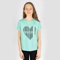 Классическая нежная футболка прямого кроя, не слишком облегающего и не слишком свободного. Красивый принт в виде сердца со штрихкодом украшает переднюю часть изделия. Изготовлена из высококачественного 100% хлопка. Рукава выполнены с притачным манжетом из кулирки в цвет изделия. Горловина круглая, обработана воротником из кулирки. Низ изделия обработан швом вподгибку. На полочке принт, шелкография.Размер 140: длина- 50 см, обхват груди- 76 см.