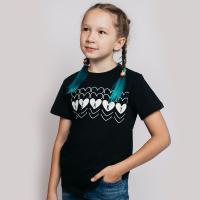 Футболка для девочки - прямого кроя. На полочке яркая надпись "Сердце". Горловина круглая, на трикотажном манжете. Втачной короткий рукав. Низ изделия и рукавов обработан швом вподгибку двойной строчкой.Размер 134: длина- 51 см, обхват груди- 70 см.