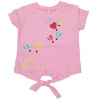 Футболка для девочки, из эластичного х/б трикотажа. Полурасклешенный силуэт. На груди красочный принт-аппликация с использованием ткани. Горловина на трикотажном манжете. Спереди, по центру, фигурный разрез с завязками.Размер 86: длина 36 см, обхват груди 51 см.