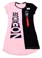 Туника для девочки, полуприталенная, скомбинирована из двух цветов. Спинка удлиненная, с округлым подолом. По бокавым швам разрезы.Параметры модели: