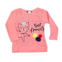 Джемпер для девочки, из эластичного, х/б трикотажа, с принтом "котёнок", украшенным цветными помпончиками. Полуприлегающий силуэт. Горловина, низ джемпера на трикотажных манжетах.Размер 86: длина 34 см, обхват груди 47 см, длина рукава 25 см.