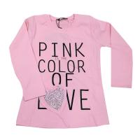 Джемпер для девочки, из эластичного х/б трикотажа с красочным принтом, украшенным аппликацией "сердце"со стразами и термопечать надписи. Полуприлегающий силуэт. Горловина отделана трикотажной манжетой.Размер 110: длина 46 см, обхват груди 60 см, длина рукава 38 см.