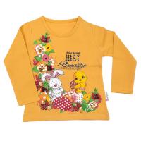 Джемпер для девочки, из эластичного, х/б трикотажа, с красочным принтом "праздник пасхи", украшенным стразами. Полуприлегающий силуэт. Горловина отделана трикотажным кантом.Размер 92: длина 33 см, обхват груди 54 см, длина рукава 30 см.
