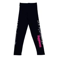 Лосины для девочки, из эластичного, х/б трикотажа, с яркой, неоново-розовой и белыми надписями. В поясе на закрытой резинке.Размер 140: длина 75 см, обхват талии 52-58 см.