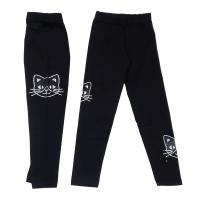 Лосины для девочки, из эластичного, х/б трикотажа. В поясе на закрытой резинке. Украшены принтом "котенок" из ткани и страз.