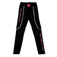 Лосины для девочки, из эластичного, х/б трикотажа, с фигурными рельефами, отделанными цветным кантом. В поясе на закрытой резинке. Украшены  надписями.