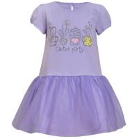 Платье с заниженной талией, отрезное из х/б трикотажа, с принтом "кактусы". Горловина с внутренней стороны отделана трикотажным кантом. Рукав-фонарик, край собран на резиночке по центру. Застежка пуговица на спинке. Юбочка со сборкой по талии, с верхней юбочкой из фатина.Размер 92 длина 44 см, обхват груди 52 см.