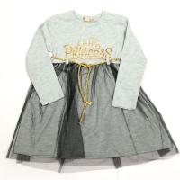 Платье для девочки из эластичного х/б трикотажа, с надписью "маленькая принцесса" на груди. Отрезное по талии. Юбочка двухслойная, со сборкой по талии. Верхний слой из фатина. По линии талии серебристый шнур-поясок.Размер 86: длина- 46 см, обхват талии- 48 см, длина рукава- 30 см.