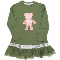 Красивое платье для маленькой модницы. Ткань- футер. Горловина с круглым вырезом. Крой "А" силуэта, с двойным воланом по низу (ткань фатин). По линии волана декоративная тесьма. На полочке принт (аппликация украшенная объёмными цветами и бусинами).Размер 92: длина- 46 см, обхва груди- 52 см, длина рукава- 37 см.