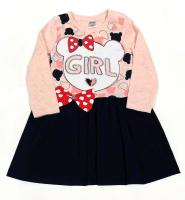 Платье для девочки. Пришивная юбочка на сборках. По линии талии объёмный бантик. На полочке принт.Рост 92 см, длина- 52 см, обхват талии- 52 см, длина рукава- 32 см.