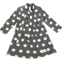 Платье на х/б подкладе. Силуэт- трапеция. На спинке вырез- капелька и застёгивается на пуковки. Воротник- стойка с завязками спереди.Размер 92: длина- 47 см, длина рукава- 29 см.