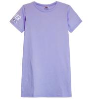 Платье - силуэт трапеция. Небольшой принт на рукаве добавляет платью нежного очарования. Горловина круглая, обработана воротником из кулирки. Низ изделия и низ рукавов обработан швом в подгибку.Размер 134: длина 71 см, обхват груди 70 см.