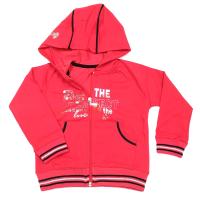 Мастерка для девочки с замком и капюшоном. Капюшон со вставкой отделанной контрастным кантом и украшенный вышивкой. Полочка украшена ярким термопринтом. Карман "кенгуру". Рукава, низ мастерки и вход в карманы обработаны трикотажной манжетой с полосками. Рукава-реглан.Размер 92 Мастерка: длина 36 см, обхват груди 62 см, длина рукава 28 см.