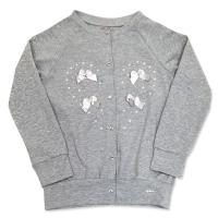 Джемпер для девочки, из эластичного, х/б трикотажа. Длинный рукав-реглан. Горловина, рукав, низ джемпера на трикотажных манжетах. На манжете снизу брендовая, металлическая надпись. Застежка кнопки-кристаллы, по центру, по всей длине. Джемпер украшен на полочке атласными бантиками, кристаллами, стразами и полубусинами.Размер 122: длина- 47 см, обхват груди- 68 см, длина рукава по внутреннему шву- 34 см.