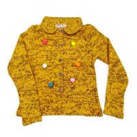 Кофта для девочки, утепленная, из эластичного х/б трикотажа, с начесом с лицевой стороны. Полуприлегающий силуэт. Круглый воротничок. Застежка пуговицы по центру, по всей длине. Украшена цветными помпончиками.Размер 116: длина 41 см, обхват груди 58 см, длина рукава 44 см.