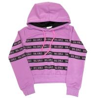 Джемпер для девочки из трикотажного х/б футера. Классический крой. На полочке и рукавах принт. Капюшон состоит из 2 половин. С изнанки капюшона выполнен подклад из кулирки контрастного цвета. По переднему срезу капюшона для утяжки вставлен утягивающий круглый шнурок с наконечниками. Рукава и низ изделия на трикотажных манжетах.Рост 140 см, длина- 43 см, обхват груди- 81 см, длина рукава- 53 см.