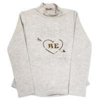 Водолазка для девочки, из эластичного х/б футера, с выпуклой надписью и рисунком, украшенными блестящей фольгой. Полуприлегающий силуэт. Воротник- стойка. Полукруглый низ.Размер 116: длина- 44 см, обхват груди- 58 см, длина рукава- 38 см.