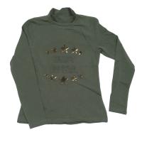 Водолазка для девочки, из эластичного х/б трикотажа, с выпуклой надписью и рисунками "звезды", украшенными блестящей фольгой. Полуприлегающий силуэт. Воротник- стойка.Размер 116: длина- 44 см, обхват груди- 58 см, длина рукава- 38 см.