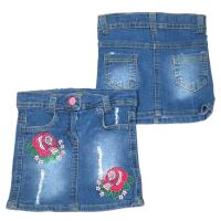 Юбка джинсовая, прямого кроя, с декоративными надрезами и вышивкой цветов. На поясе со шлевками для ремешка, сзади на кокетке. На поясе, с внутренней стороны спинки, вшита резинка и пуговицы для регулирования резинки. Ширинка с застежкой молния и пуговицей на поясе. Два боковых прорезных кармана, Сзади два накладных кармана.Размер 92: длина 23 см, обхват талии 50 см.