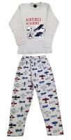 Пижама для мальчика. Джемпер прямого кроя, на полочке принт самолёт. Брючки прямые, с эластичным поясом.Размер 104: длина джемпера- 41 см, обхват груди- 60 см, длина рукава- 39 см, длина брюк- 58 см, обхват талии- 56 см.