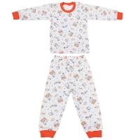 Пижама детская из х/б трикотажа (футер), состоящая из джемпера и штанов, с красочным принтом "Забавные животные".Джемпер прямого кроя. Застегивается на две кнопки на левом плече. Горловина и рукав джемпера на трикотажных манжетах из рибаны контрастного цвета. Низ изделия обработан швом вподгибку двойной строчкой.