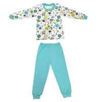 Пижама детская из х/б трикотажа (интерлок), состоящая из джемпера и штанов, с красочными рисунками "Вселенная".Джемпер прямого кроя. Горловина круглая обработана воротником из рибаны контрастного цвета. Рукава на трикотажном манжете из рибаны контрастного цвета. Низ изделия обработан швом вподгибку двойной строчкой.