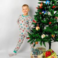 Пижама детская, состоящая из джемпера и брюк. Выполнена из х/б трикотажа (интерлок). Модель украшена новогодним принтом "Рождественские пингвинята" по всей длине изделия.Джемпер прямого силуэта, с втачным длинным рукавом. Горловина круглая. Горловина и низ рукавов обработаны эластичным трикотажным манжетом контрастного цвета. Низ изделия обработан швом вподгибку двойной строчкой.