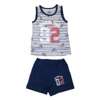 Пижама для мальчика: майка и шорты, из эластичного х/б трикотажа.Майка из трикотажа с полосками. рисунками и принтом "02". Горловина и проймы отделаны трикотажным кантом.