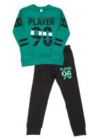 Костюм для мальчика. Джемпер классического кроя, рукава на манжетах. Брюки на манжетах, в поясе эластичная резинка, боковые карманы.Рост 140 см, длина джемпера- 57 см, обхват груди- 84 см, длина рукава- 54 см, длина брюк- 88 см, обхват талии- 74 см.